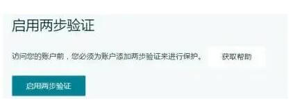 最后,还需要对注册的账户启用两步验证来进行保护,点击下图中的“启用两步验证”开始进行验证。注意:如果两步验证的页面无法打开,请清空浏览器的Cookie后刷新。还是打不开的话可更换浏览器尝试。