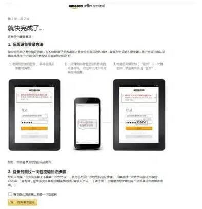 完成上述步骤后,恭喜您!账户注册已完成,请在两个工作日后使用您的注册邮箱、密码登入亚马逊卖家平台,即可看到身份验证的结果。可以登陆卖家平台即为审核通过注册成功,亚马逊也会用邮件通知您身份验证的结果。