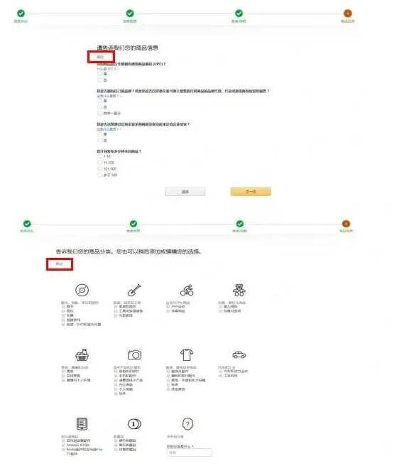 这一步亚马逊会列举一些问题请您回答,借此了解类家的产品性质和开始销售时计划的数量。基于这些信息,亚马逊可以向推荐适合的相关工具和信息。